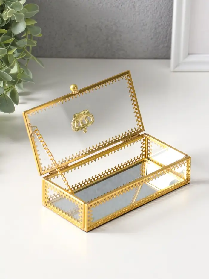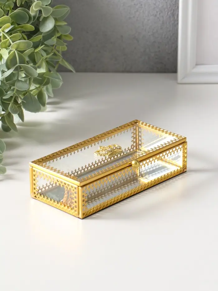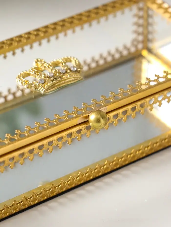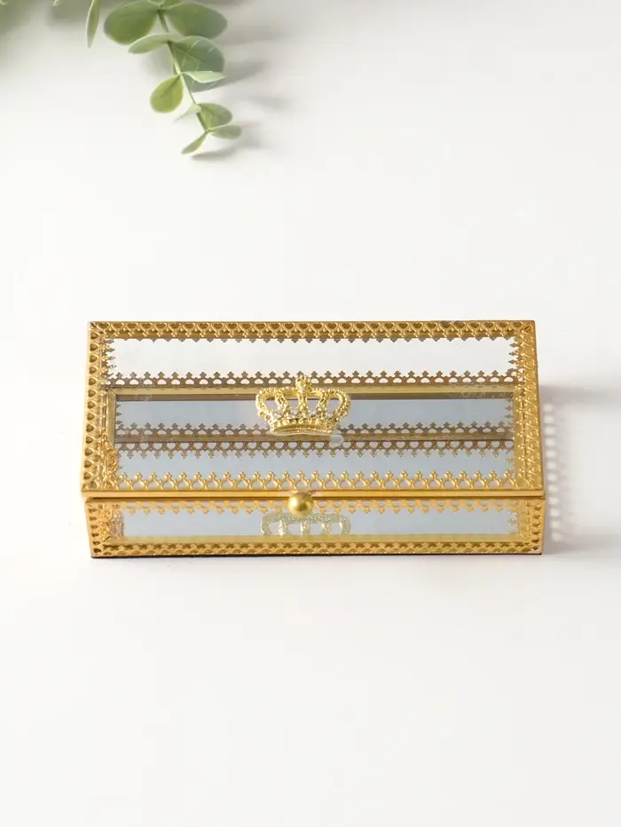 Шкатулка стекло с металлическим каркасом "Корона" золото 14,2х6,8х3,5 см