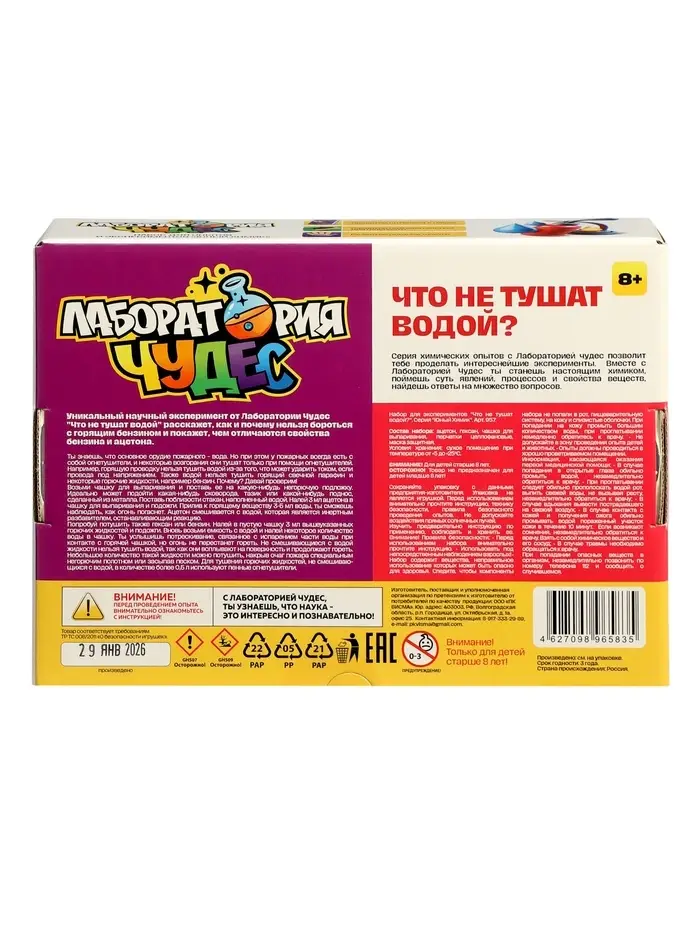 Набор опытов и экспериментов "Что не тушат водой", серия Юный Химик 957