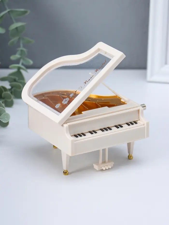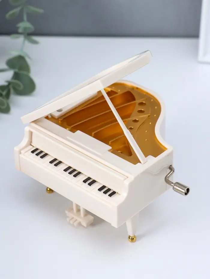 Шкатулка музыкальная механическая "Пианино" белая 9х10,5х6,2 см