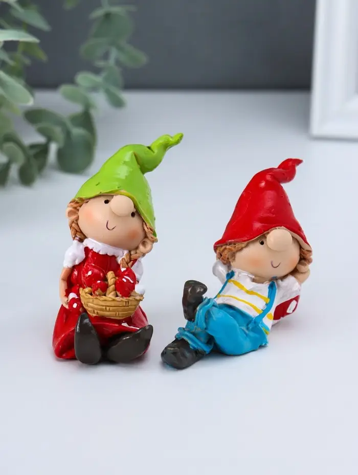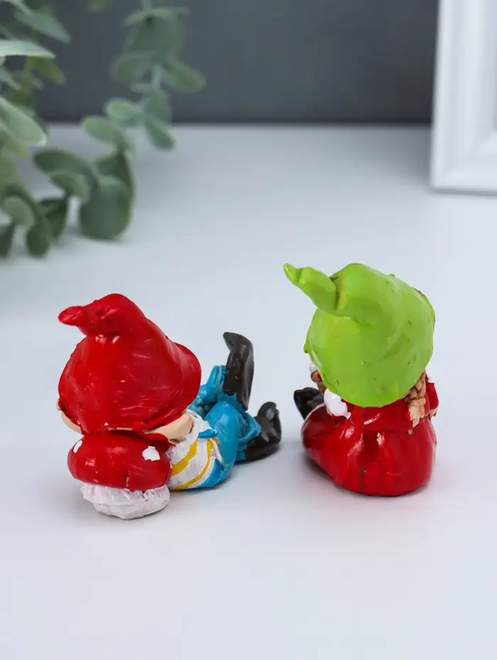 Сувенир полистоун "Малыши в длинных колпаках" красный набор 2 шт 3,3х6х6,7 см