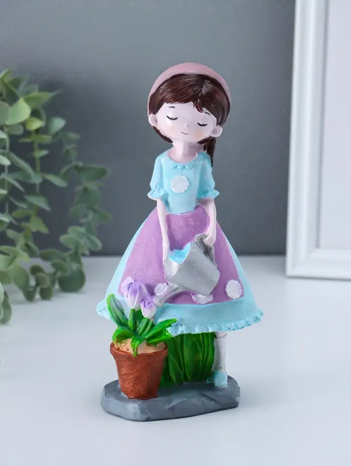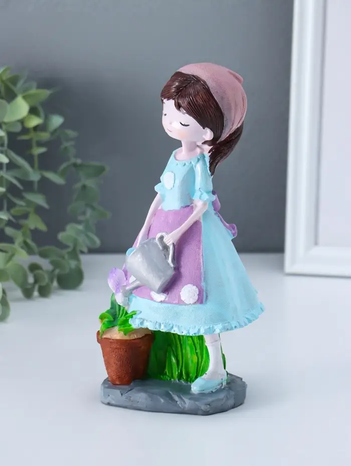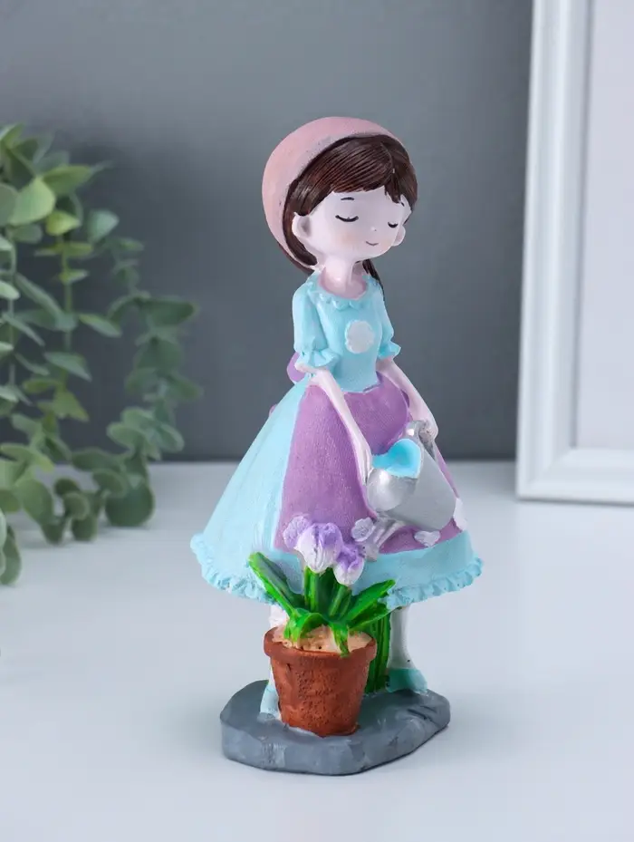 Сувенир полистоун "Девочка с лейкой поливает цветы" 8,8х10,5х20 см