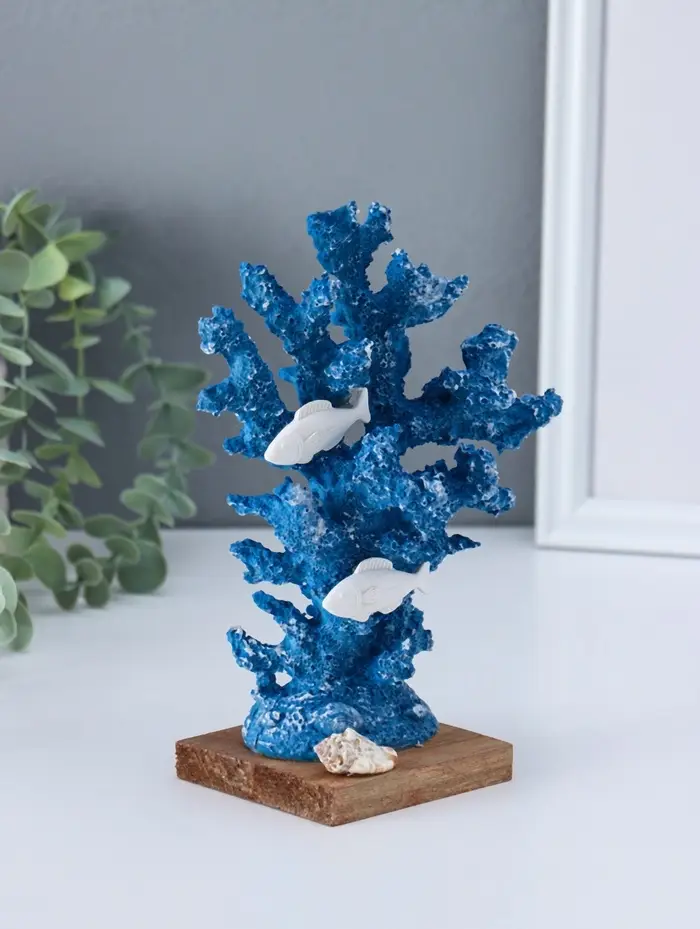 Сувенир полистоун "Рыбки у синих кораллов" 6,5х14х19,5 см