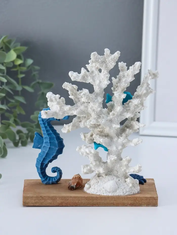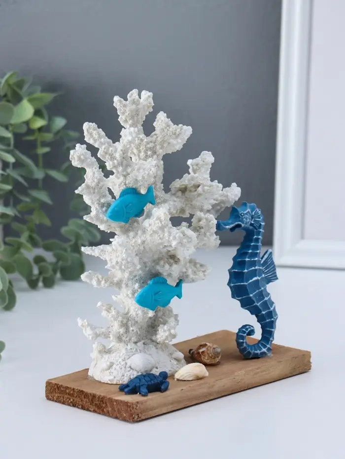 Сувенир полистоун "Рыбки и морской конёк у белых кораллов" 7,5х15,7х19,5 см