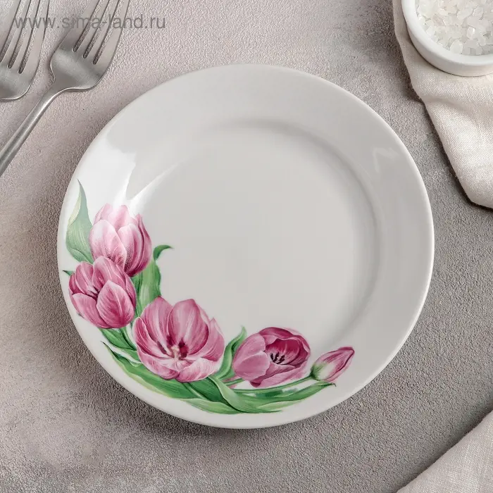 Тарелка «Розовые тюльпаны», d=17,5 см, белая, фарфор
