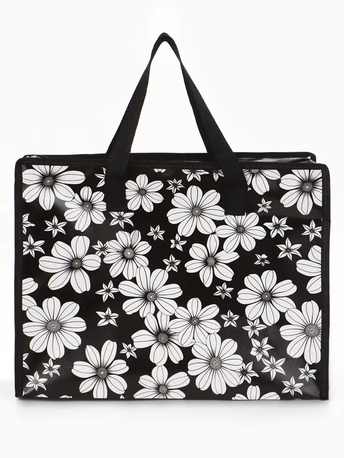 Сумка Цветы, 40*15*30, отдел на молнии, черный