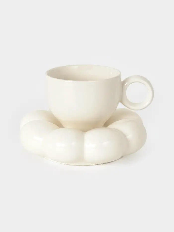 Чайная пара "Облако" цвет белый, блюдце 14х3см, чашка 12х8,5х7 см