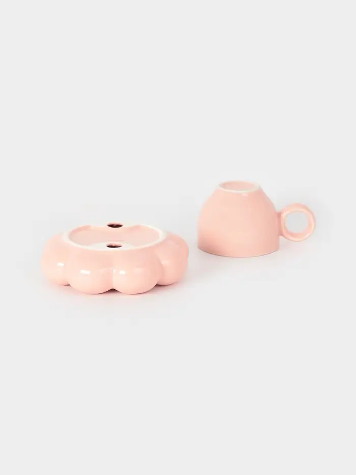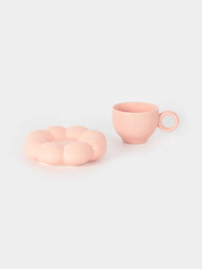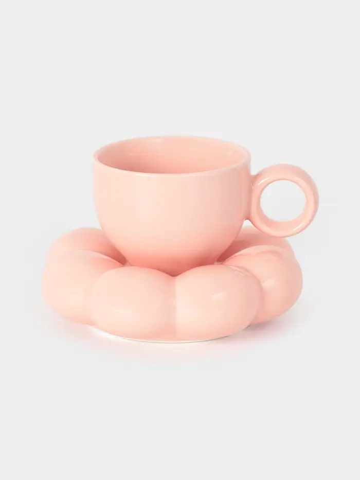Чайная пара "Облако" цвет розовый, блюдце 14х3см, чашка 12х8,5х7 см