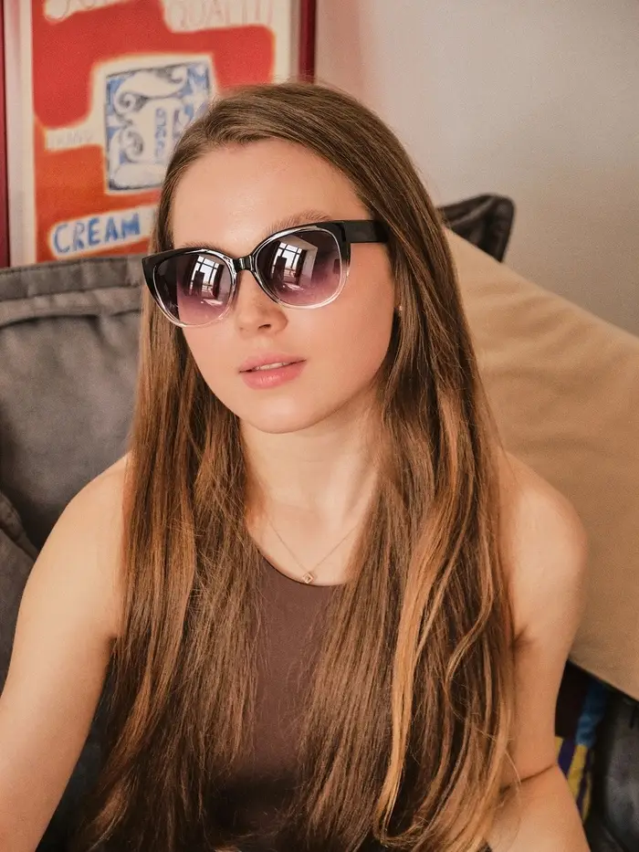 Добавьте в свой арсенал аксессуар, который моментально преображает взгляд, наделяя его загадочностью и голливудским шиком. Эти очки в классической оправе «кошачий глаз» с изысканным фиолетовым градиентом созданы для тех, кто воспринимает каждый выход из дома как возможность заявить о своем безупречном вкусе.