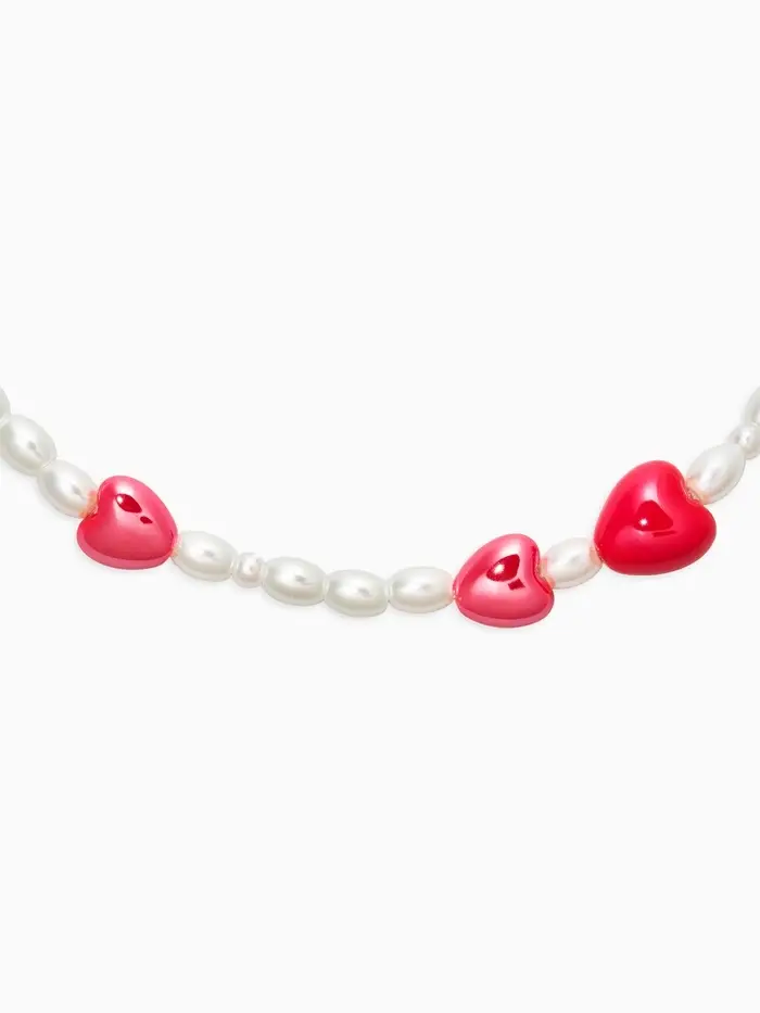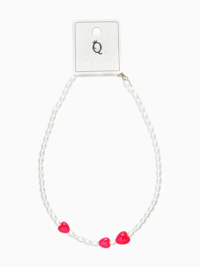 Бусы жемчуг «Сердце» керамика, цвет красно-белый, L=40см