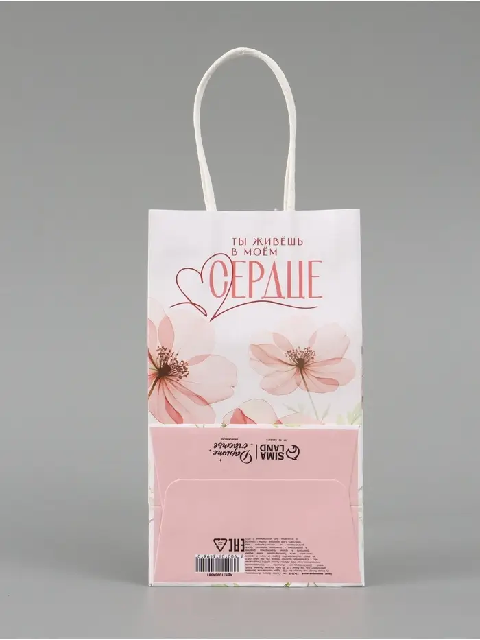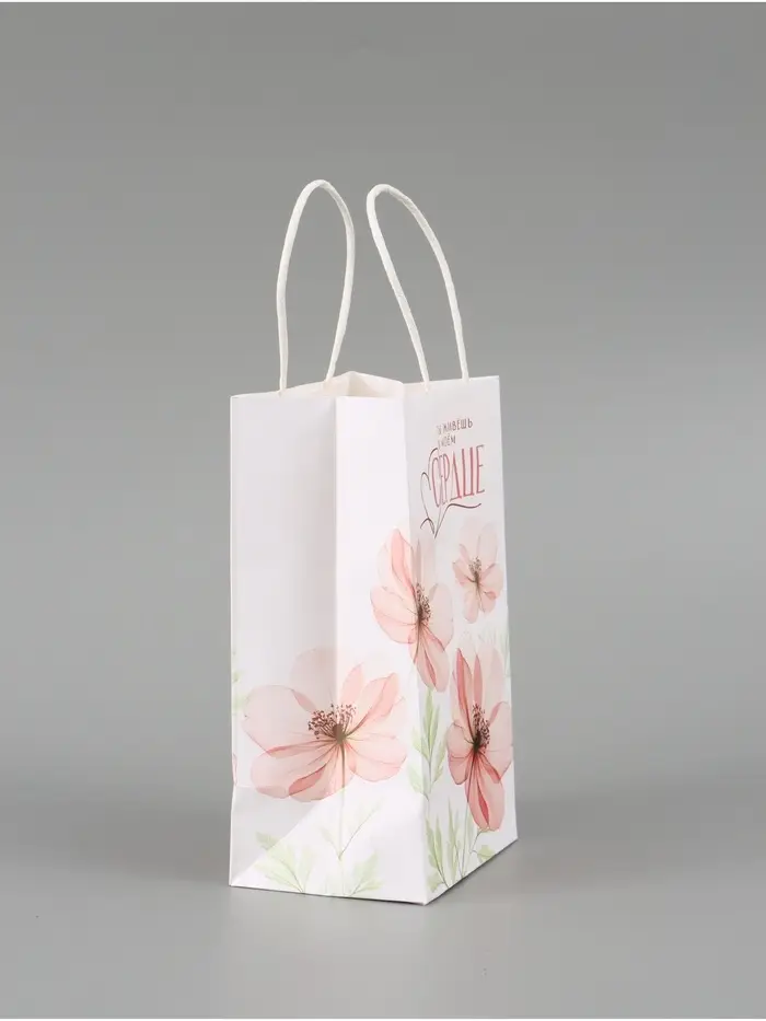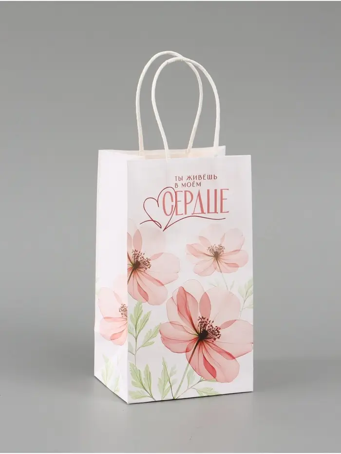 Пакет подарочный «Сердце», цветы, 12 х 21 х 9 см