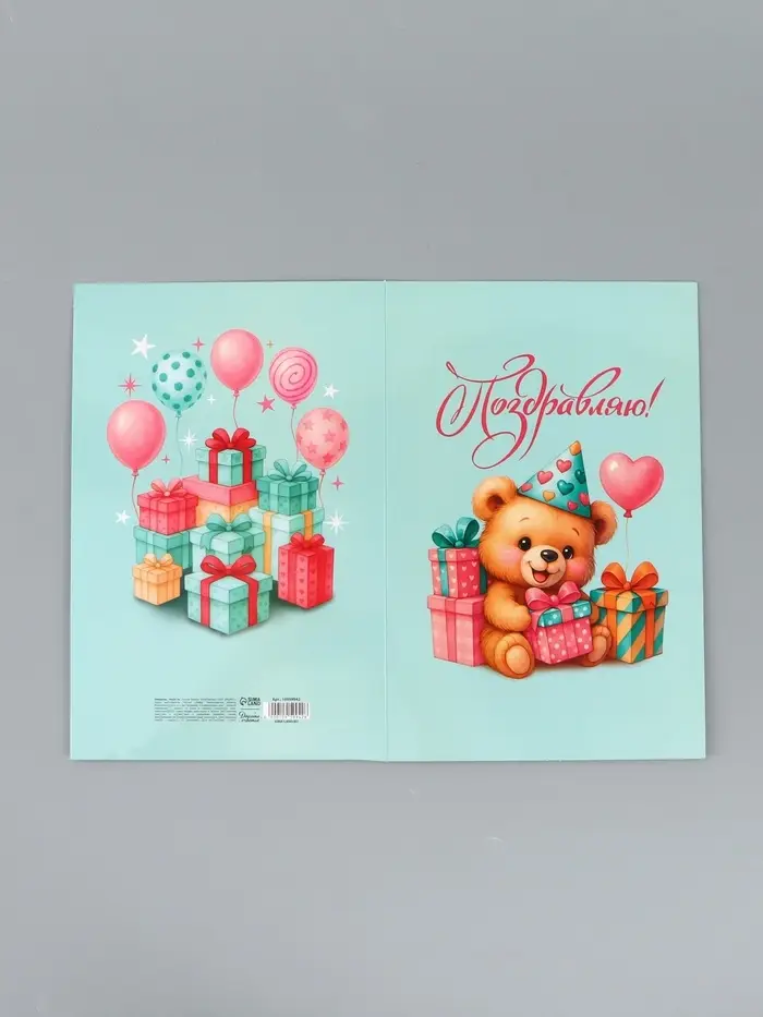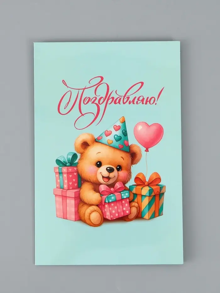 Открытка поздравительная «Поздравляю», мишка, 19 х 29 см