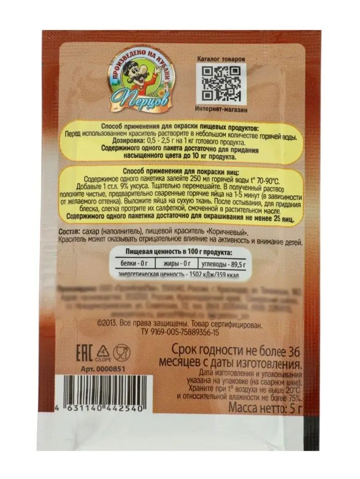 Пищевой краситель, сухой, коричневый 5 г