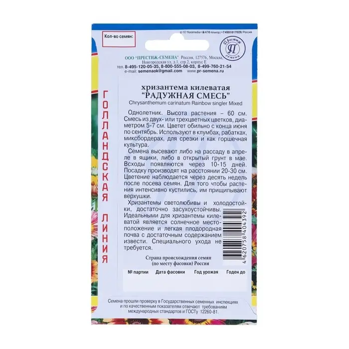 Семена цветов Хризантема Радужная Смесь РС-1, О, 0,05 г