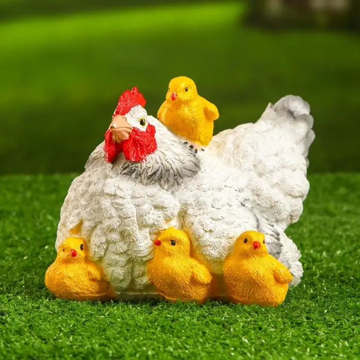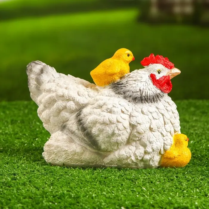 Садовая фигура "Курица белая с цыплятами" 21х16х14см