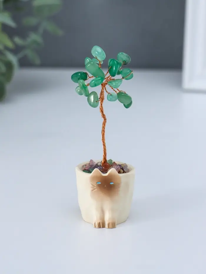 Сувенир "Котик-горшок и зелёное дерево" 12 камней 3,3х3,4х8,8 см