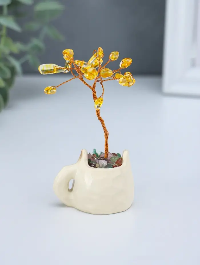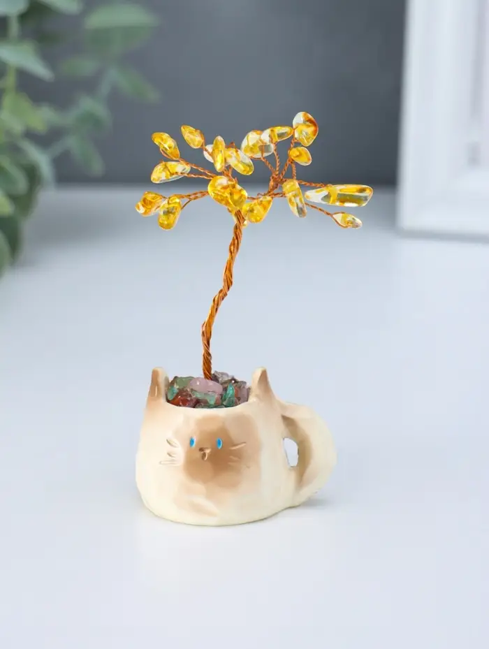 Сувенир "Котик-кружка и жёлтое дерево" 12 камней 3,5х4,7х7,5 см