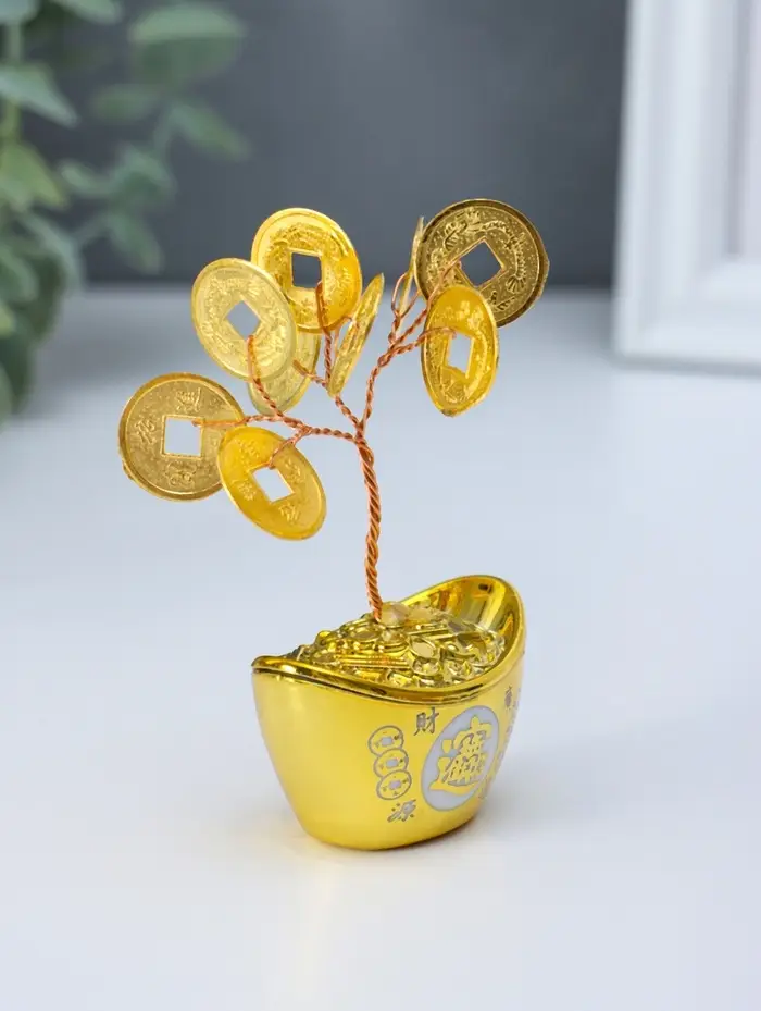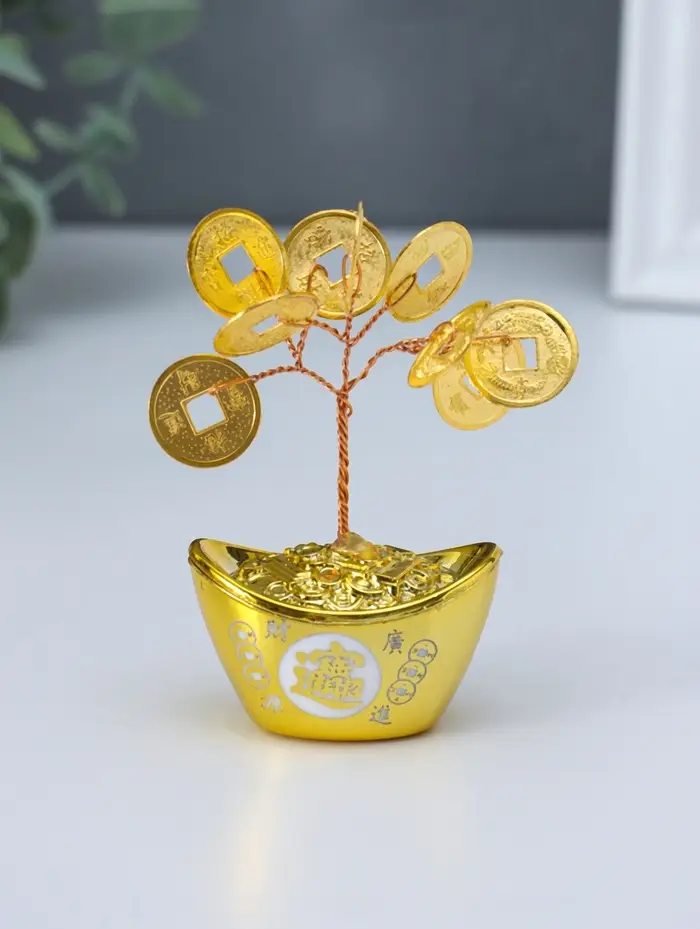 Сувенир "Денежное дерево и слиток золота" 9 монет 3,3х5х8 см