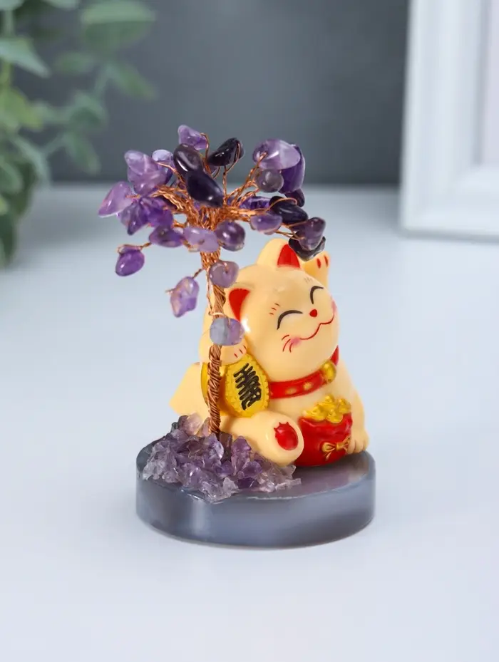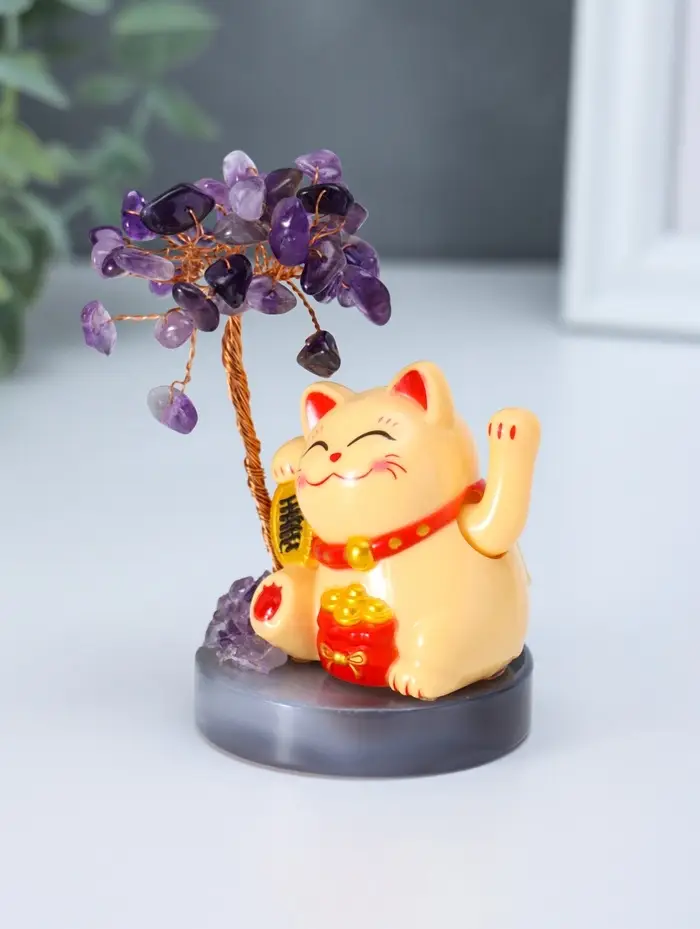 Маятник пластик "Жёлтый Манэки-нэко у дерева" 36 камней 5,5х5,5х11 см