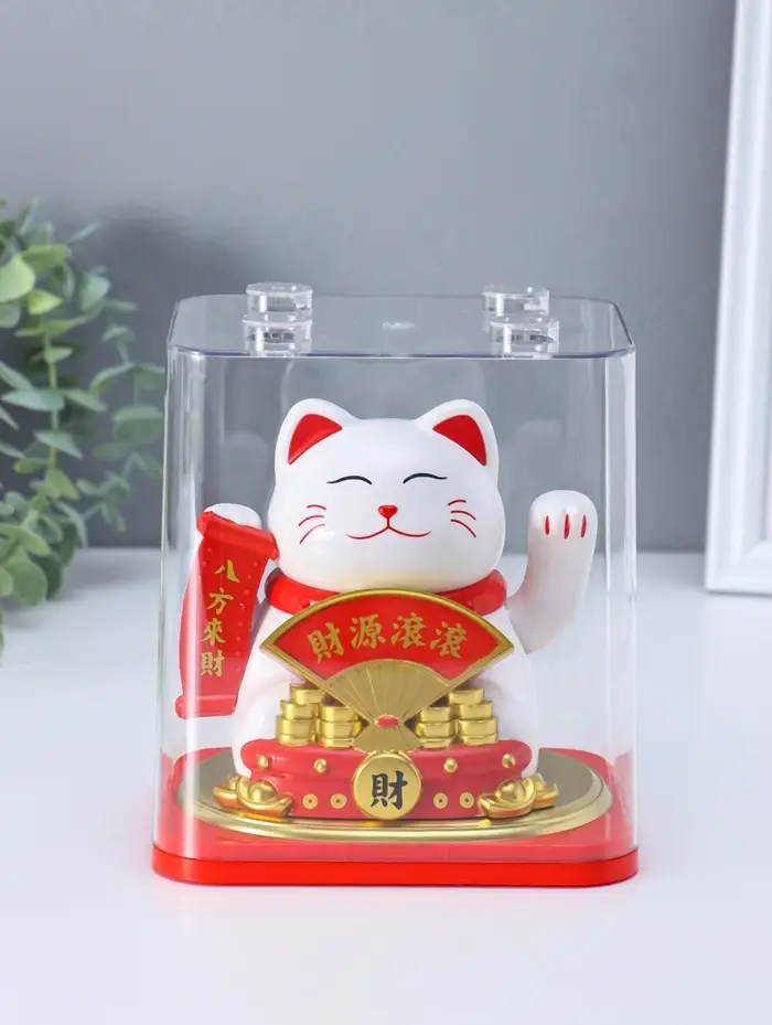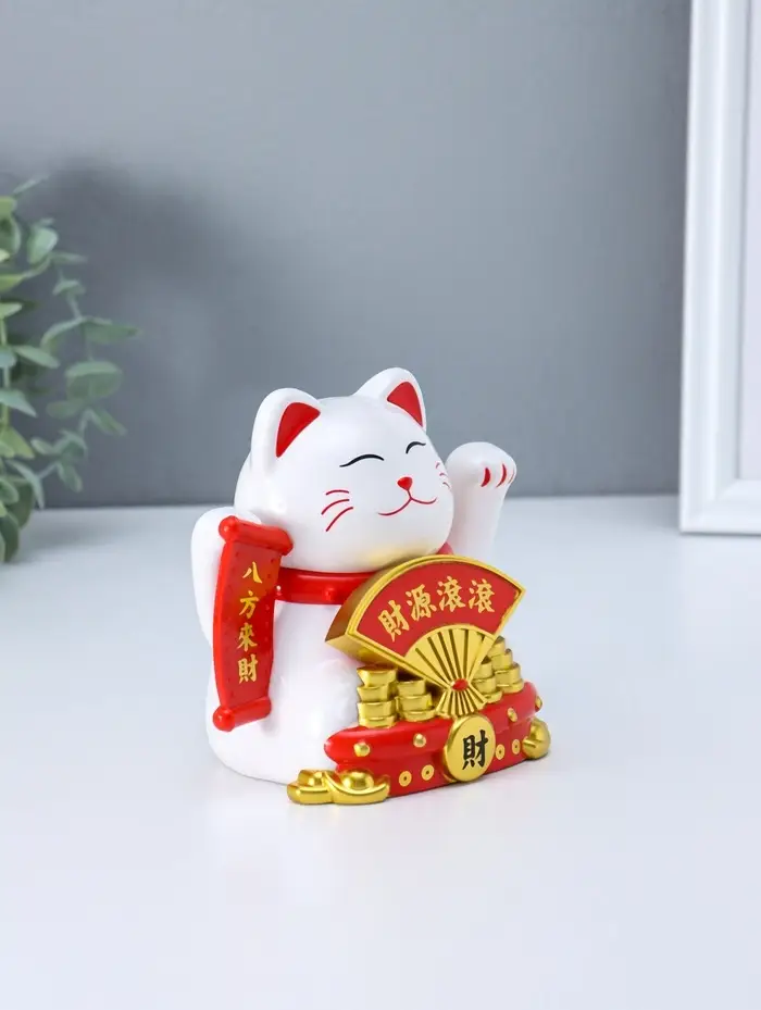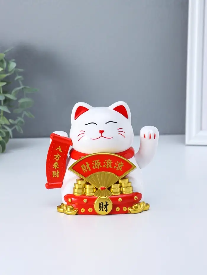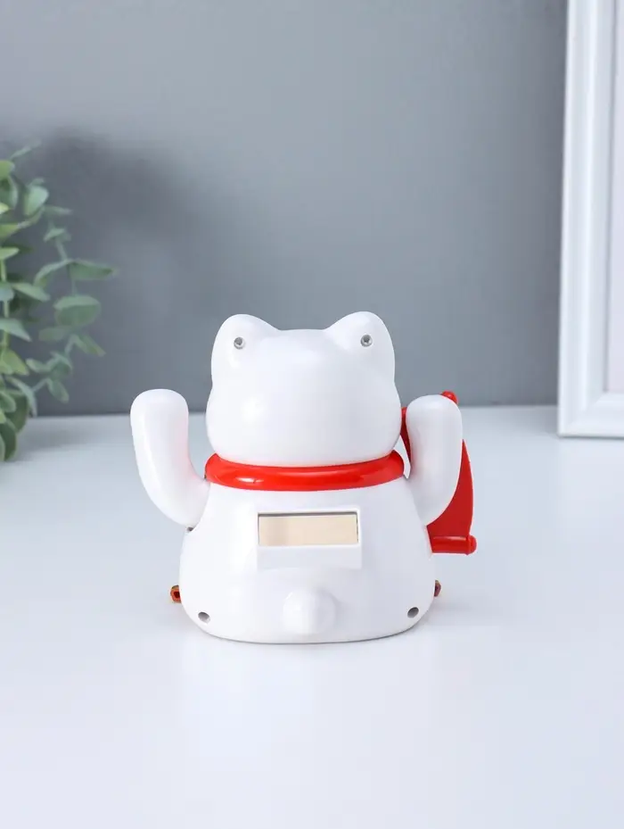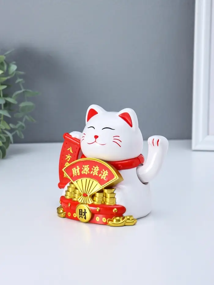 Маятник пластик от солнечной батареи "Белый кот Манэки-нэко с веером" 11,2х14,3х15,3 см