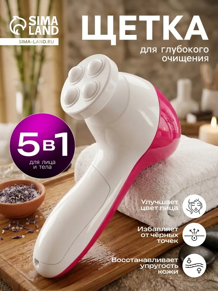 Щётка для массажа и умывания LMZ-039, 5 в 1, для лица и тела, электрическая, от батареек 2хAA, розовая