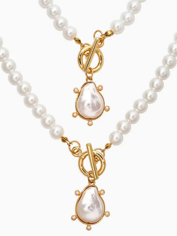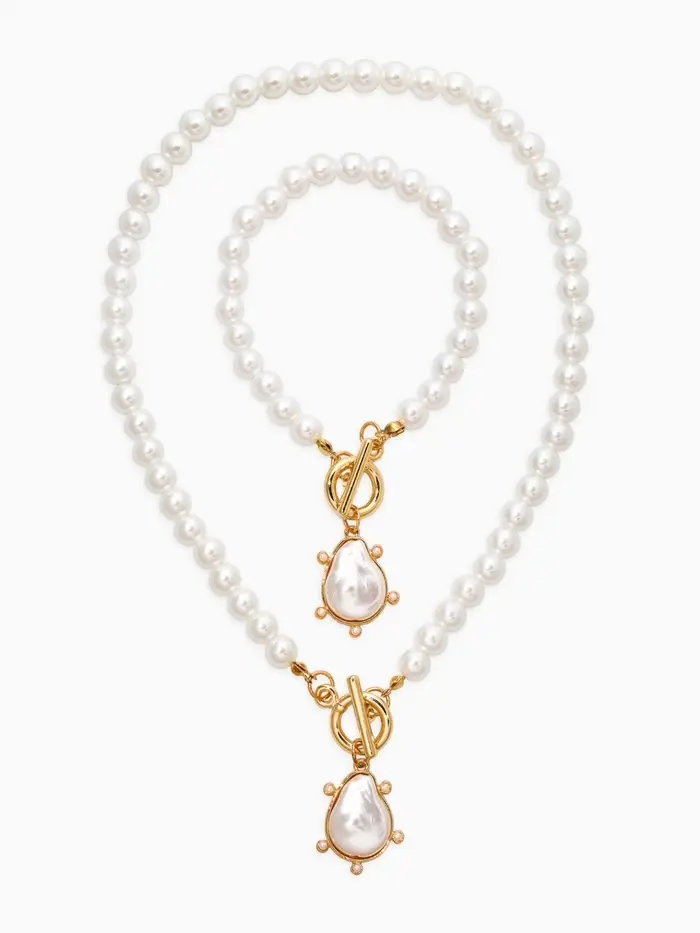Набор 2 пред-а: колье,браслет "Жемчуг с подвеской барочной" 18/42 №8, цвет белый в золоте