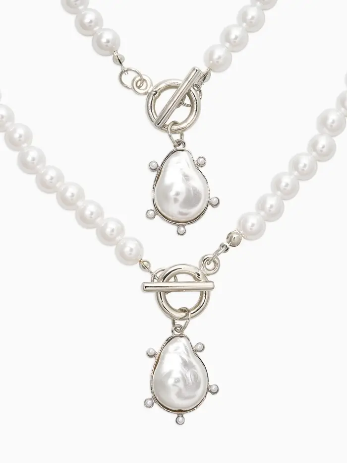 Набор 2 пред-а: колье,браслет "Жемчуг с подвеской барочной" 18/42 №8, цвет белый в серебре 1093712