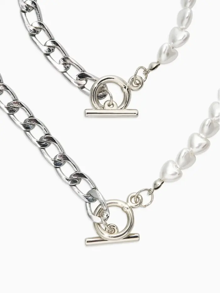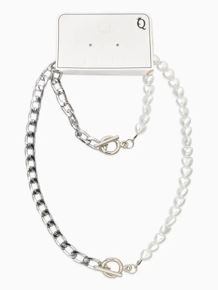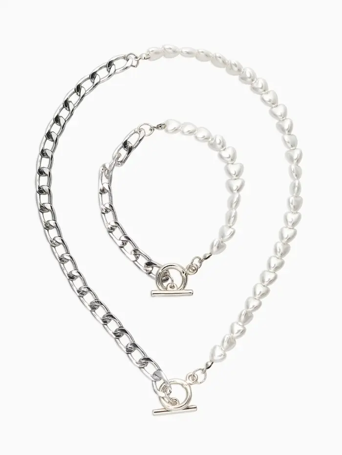 Набор 2 пред-а: колье,браслет "Жемчуг сердце с цепочкой" 18/42, цвет белый в серебре