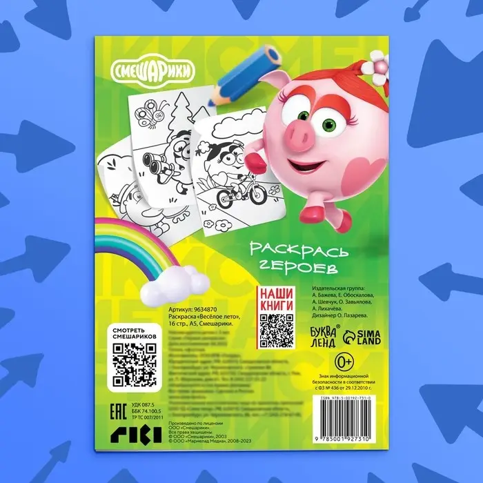 Увлекательная книжка-раскраска из серии «Смешарики» создана специально для творческого развития малышей с раннего возраста.