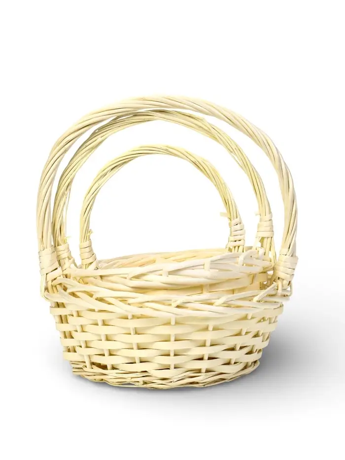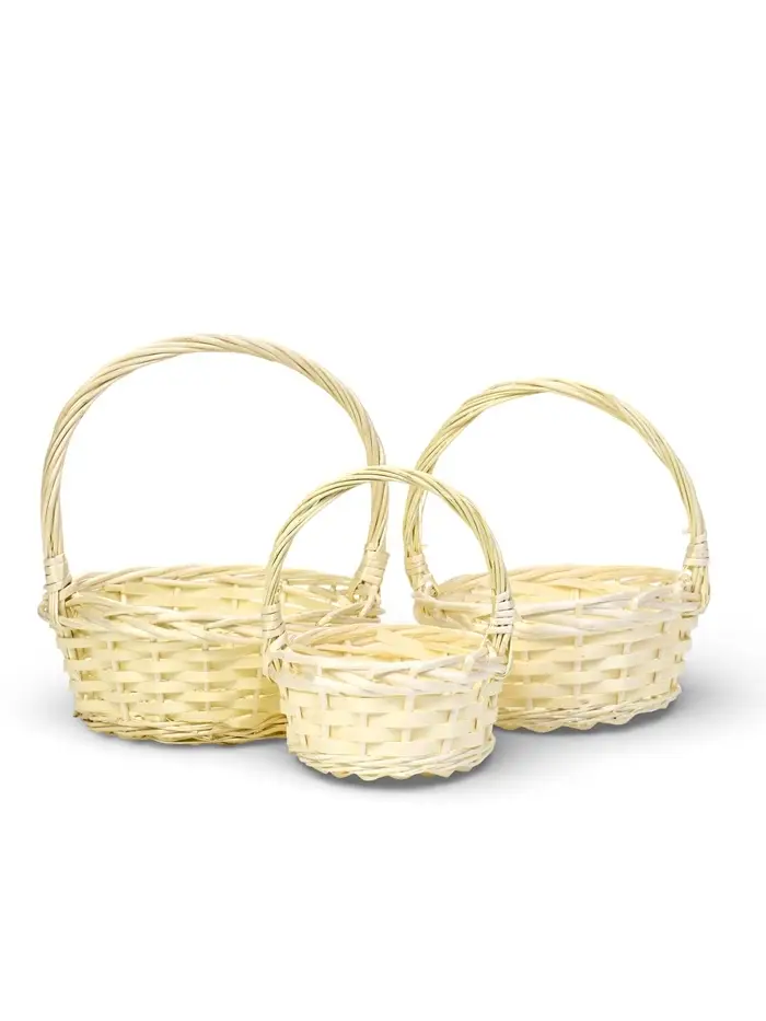 Набор корзин 3 шт ИВА 27x27x11 22x22x10 15x15x9 см ПЛЕТ ручка h=17/14/12 см выбел