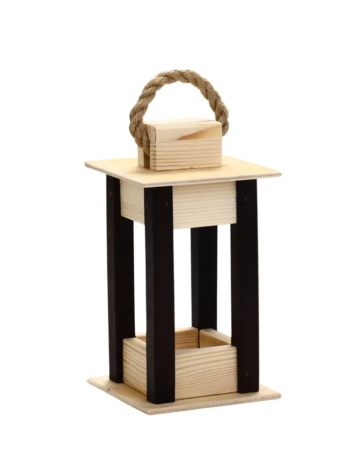 Кашпо деревянное 9×9×18 см "Фонарик", ручка верёвка, черно-белый Дарим Красиво