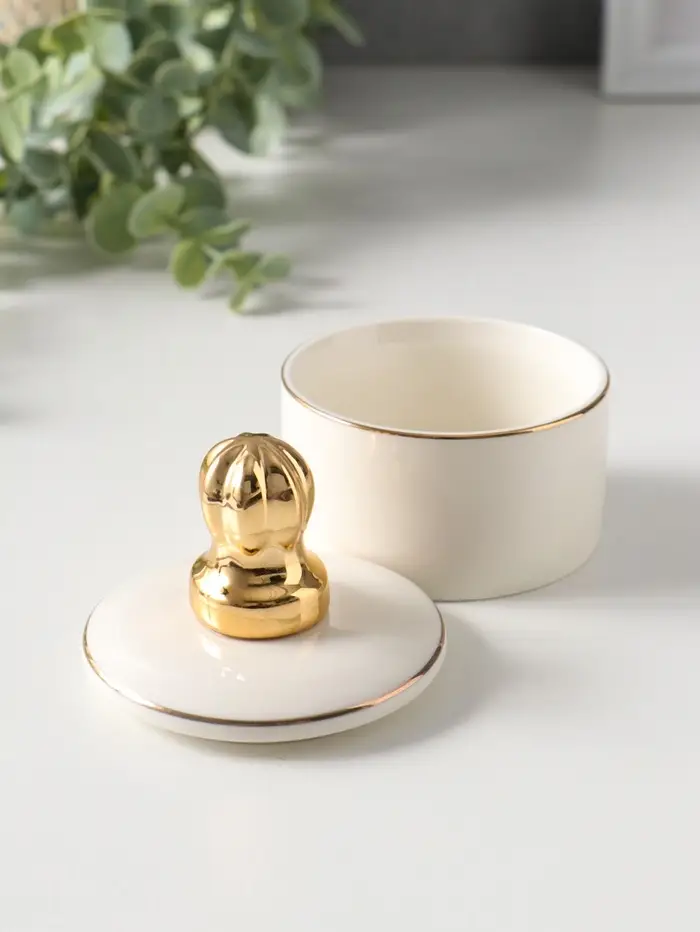 Шкатулка керамика с золотой линией "Королевская пешка" 7х7х8,5 см