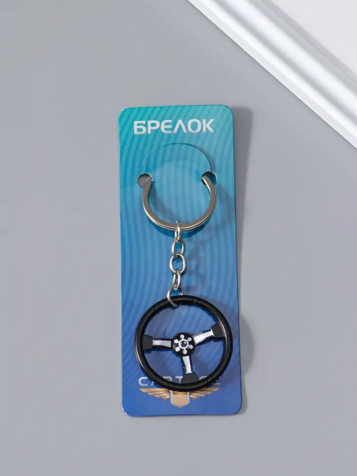 Брелок для ключей Cartage "Руль" черный с белым 4х4х0,3 см