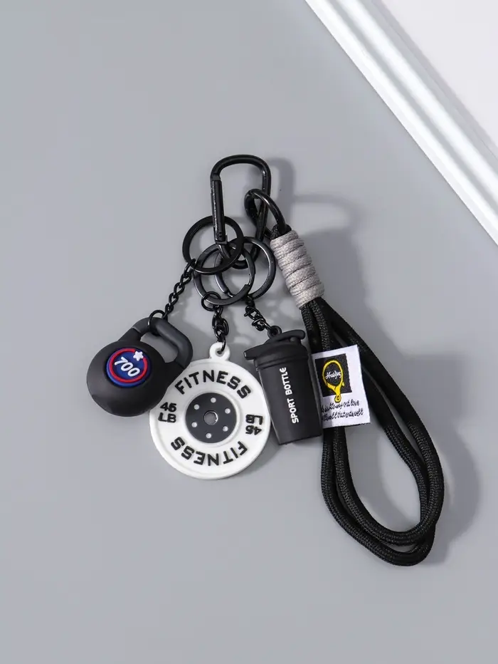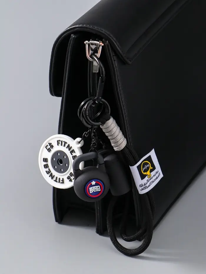 Брелок резина, текстиль с карабином "Гиря, диск и бутылка" чёрный 13,5х4,5х2,2 см