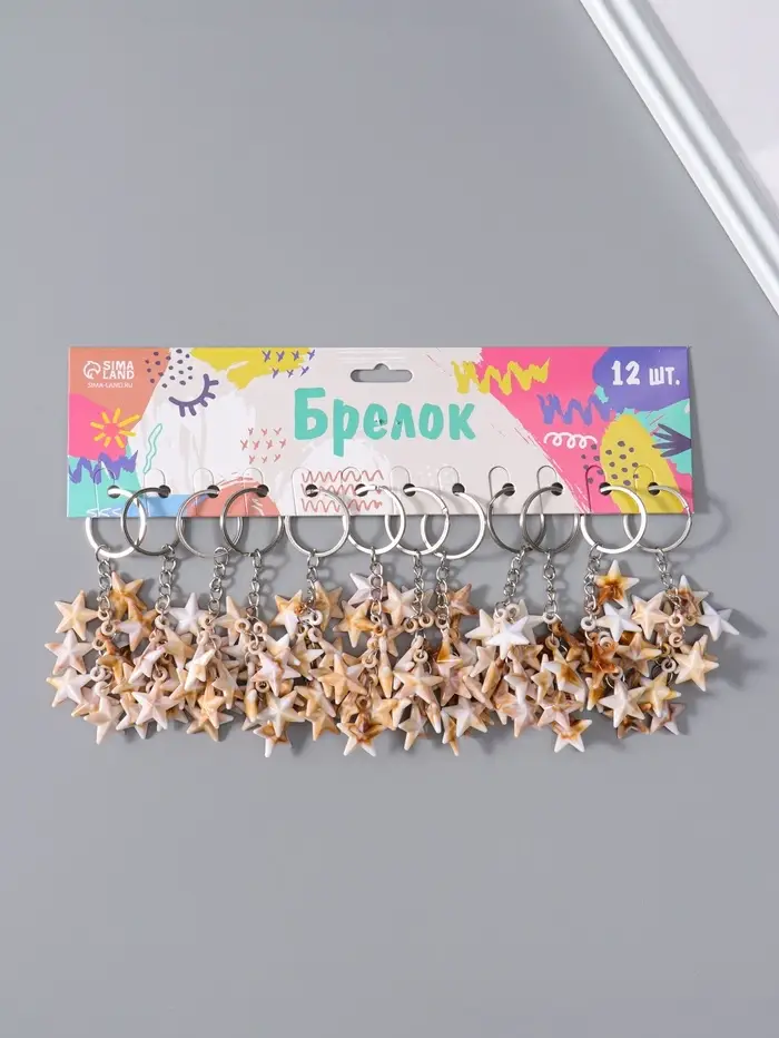 Брелок пластик "Звёзды" под песочный мрамор 9 шт 2х2,5х7 см