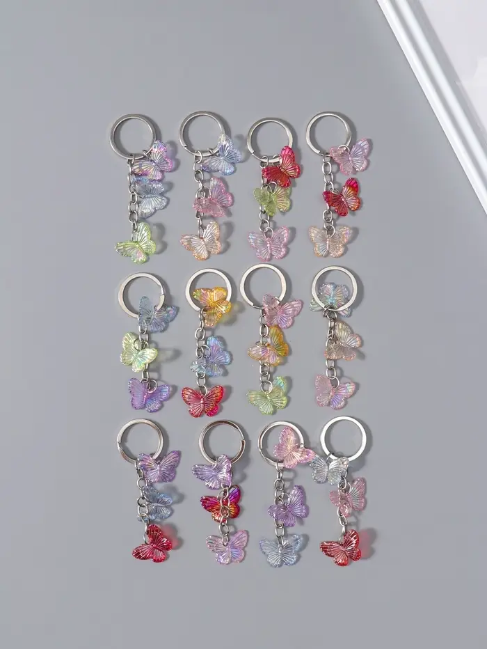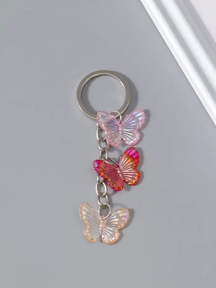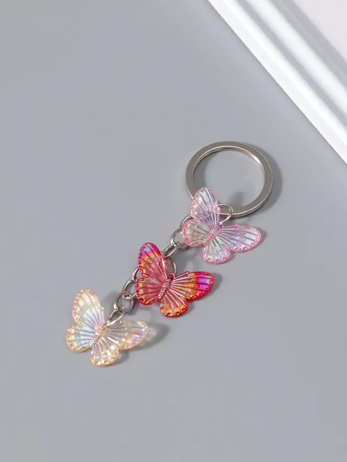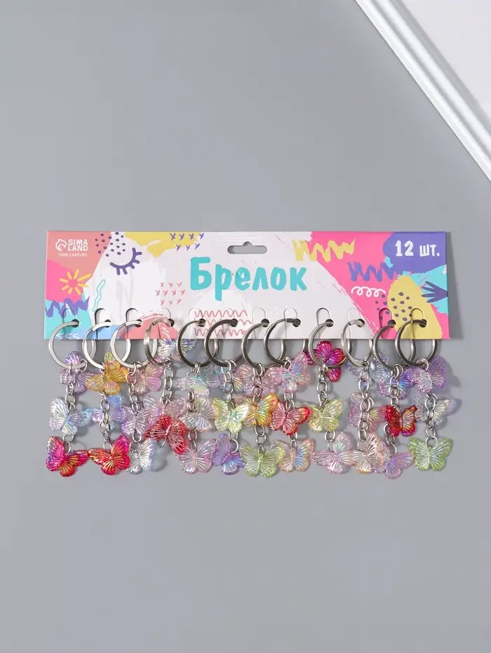 Брелок пластик "Цветные бабочки" 3 бабочки МИКС 2,5х7 см