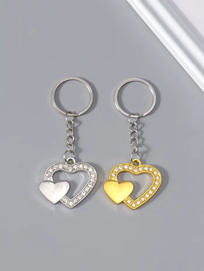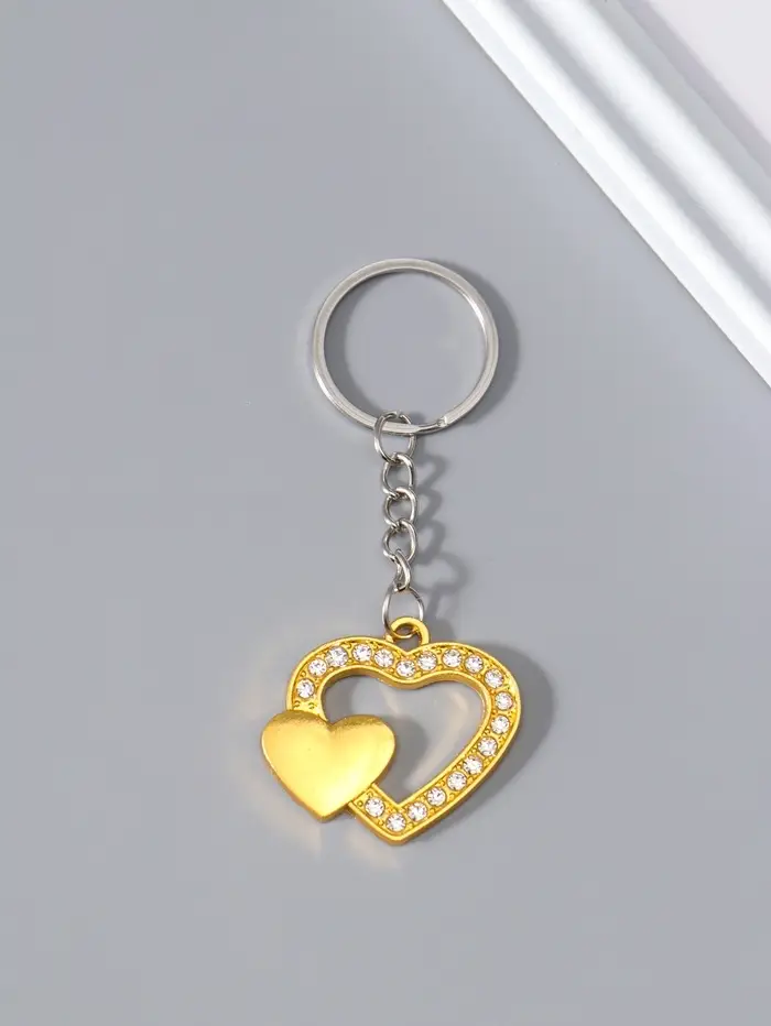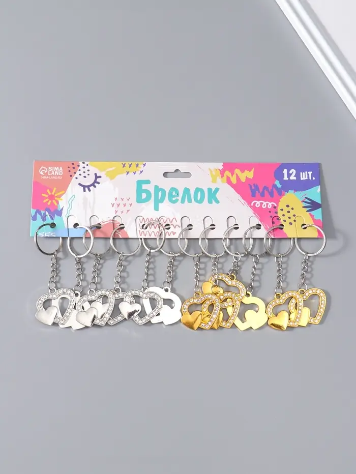 Брелок металл "Двойное сердце" стразы МИКС 3,3х3,7 см