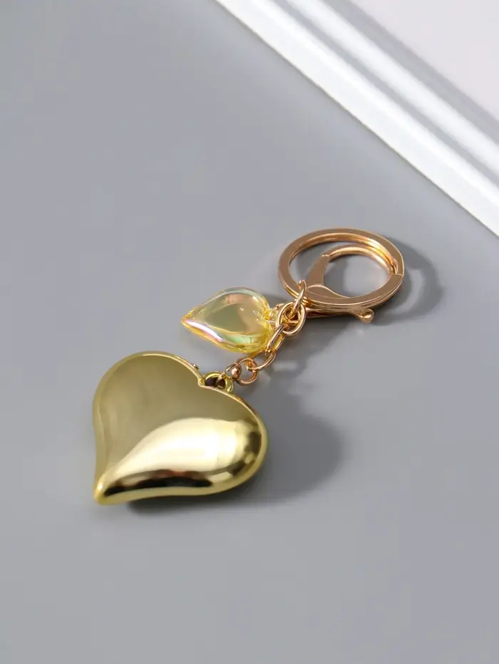 Брелок пластик с карабином "Два сердца" золото 4,5х4,5х1,5 см