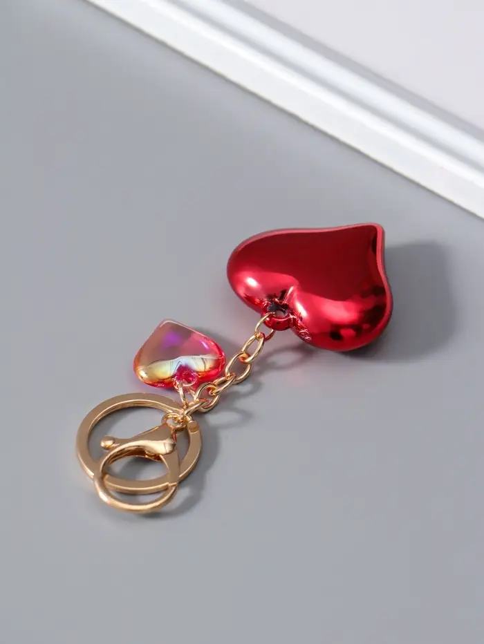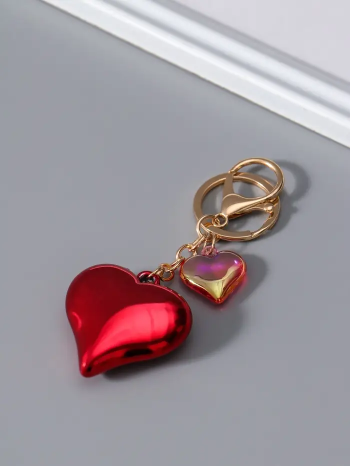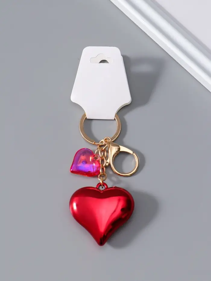 Брелок пластик с карабином "Два сердца" красный 4,5х4,5х1,5 см