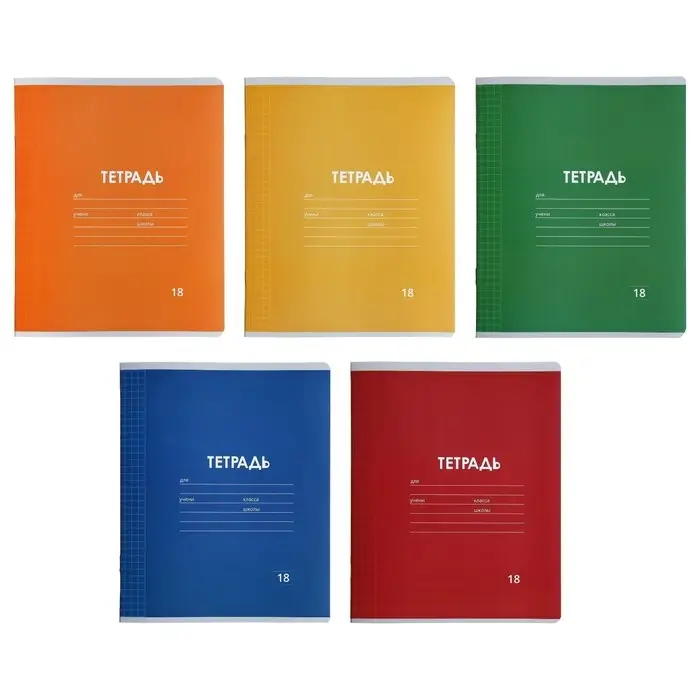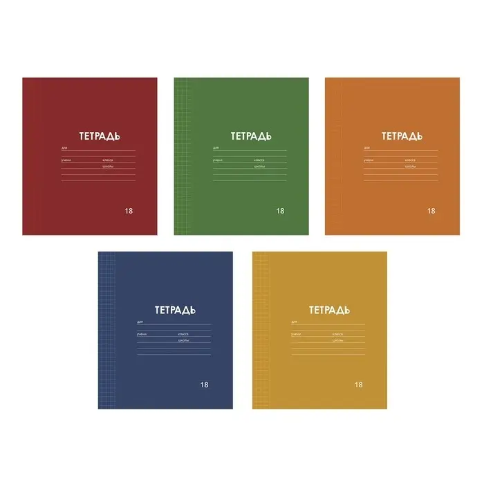 Тетрадь 18 листов в клетку Calligrata "Однотонная Классика Линовка. Эконом", обложка мелованная бумага, ВД-лак, блок №2 (серые листы), МИКС
