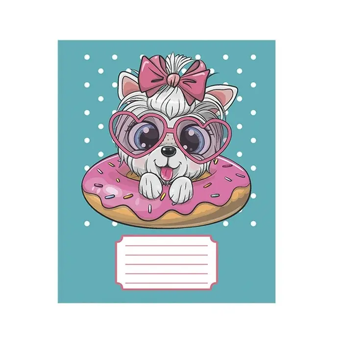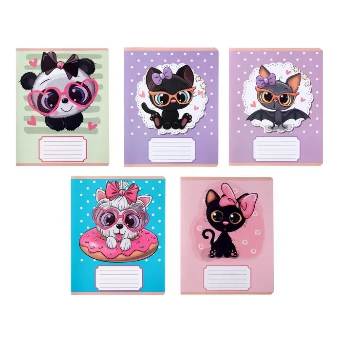 Тетрадь 12 листов в узкую линию Calligrata "Милашки с бантиком", обложка мелованная бумага, ВД-лак, блок офсет, белизна 95%, МИКС