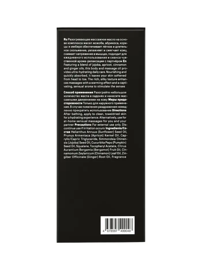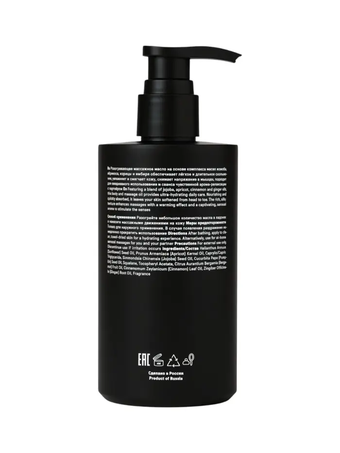 Благодаря маслам абрикосовых косточек, жожоба, тыквы и семян подсолнечника, а также сквалану и витамину E, кожа получает питание, увлажнение и мягкость, оставаясь эластичной и гладкой. Эфирные масла бергамота, корицы и корня имбиря добавляют чувственности и мягко стимулируют кровообращение.