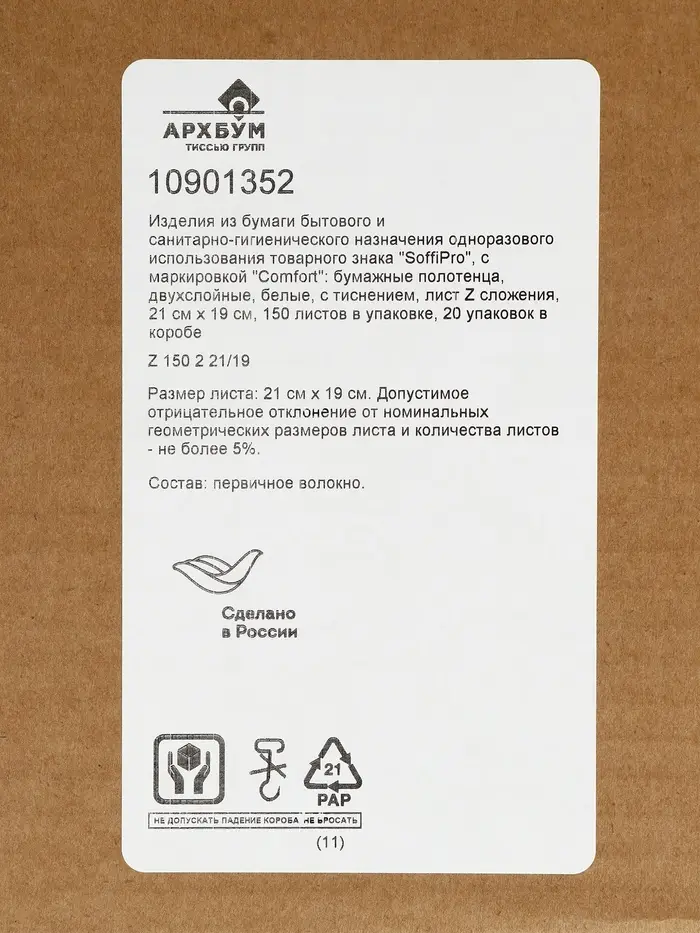 Бумажные полотенца Z-сложения SoffiPro Comfort 21*19,двухслойные,150 шт