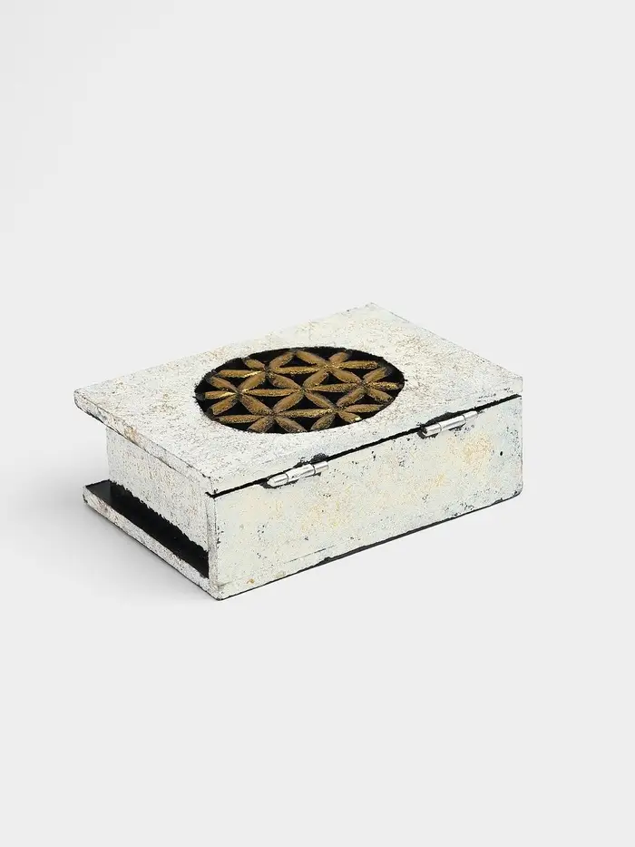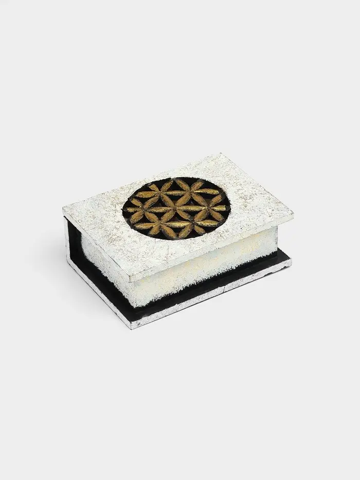 - Белый фон с цветами: Деликатный рисунок на белой поверхности добавляет шкатулке женственности, не перегружая дизайн.