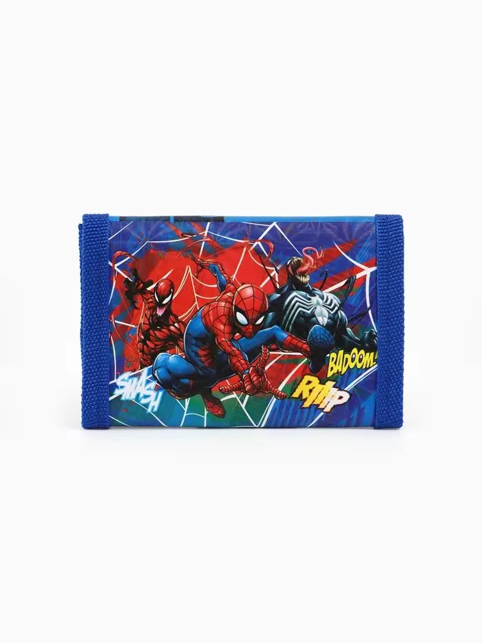 Компактный детский кошелек с изображением Человека-паука. Предназначен для хранения карманных денег, наклеек, мелких игрушек и других детских мелочей. Застежка на липучке удобна для самостоятельного использования ребенком. Размер 8х11,5х1 см оптимален для детских рук, легко убирается в карман куртки, джинсов или небольшой рюкзак. Материал сохраняет форму и яркость принта даже при активном использовании. Кошелек приучает ребенка к порядку и самостоятельности. Удобно брать с собой на прогулку, в поездки или детский сад.