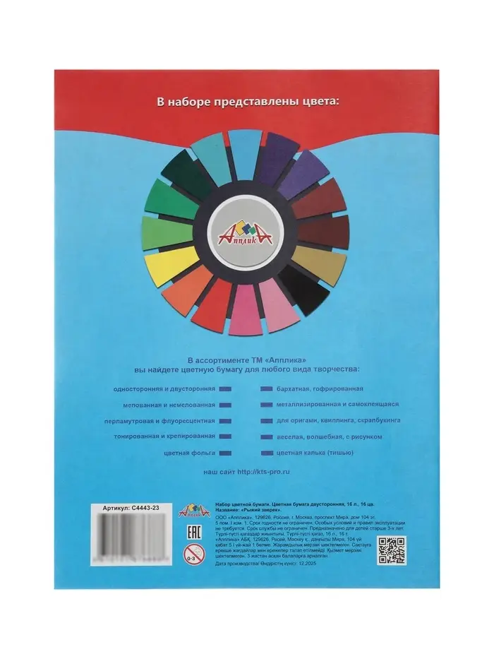 Бумага цветная А4 16л 16цв газ 50г/м² "Рыжий зверек", одностор