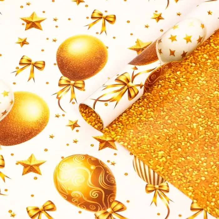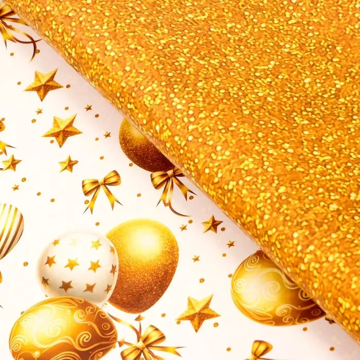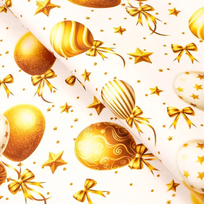 Бумага упаковочная глянцевая двусторонняя "Золотые шары", 100 х 69 см