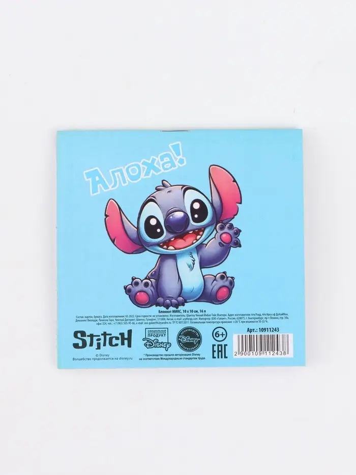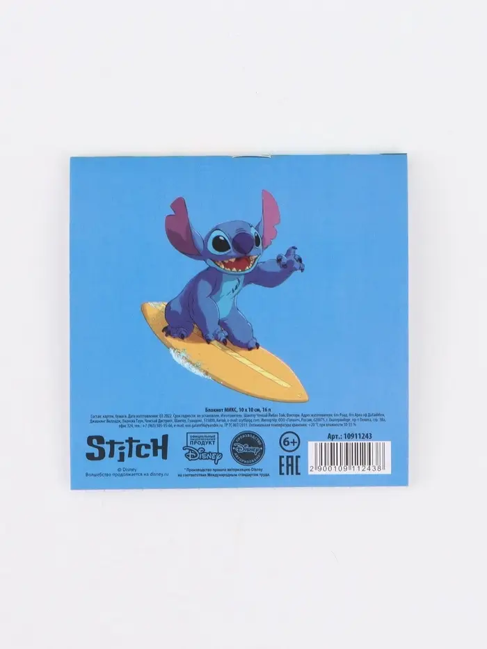 Блокнот 10х10см, 16 л МИКС "Стич"
