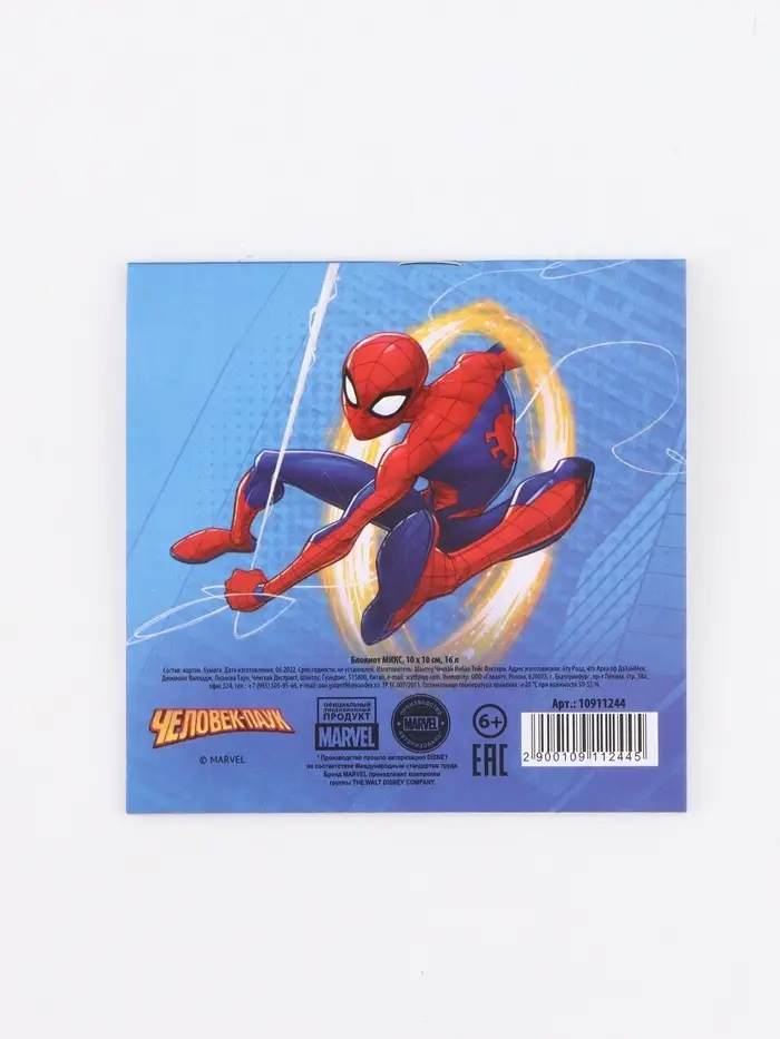 Блокнот 10х10см, 16 л МИКС "Человек паук"