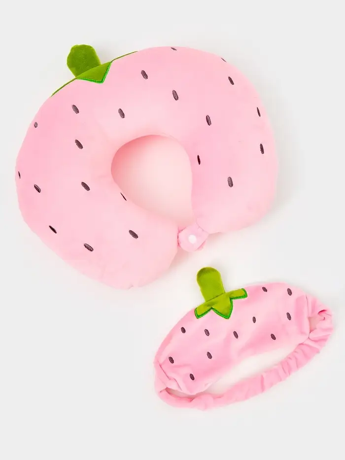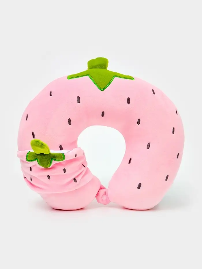 Мягкая игрушка - антистресс подголовник "Клубничка" с маской для сна