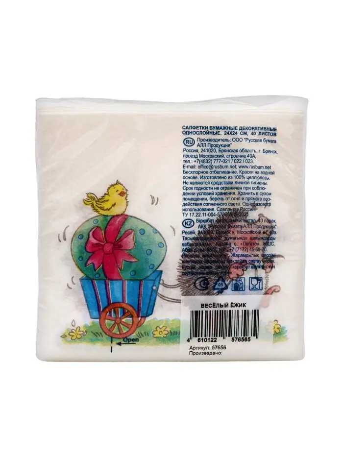 Салфетки пасхальные бумажные «Веселый ёжик», 1 слой, 24×24 см, 40 шт